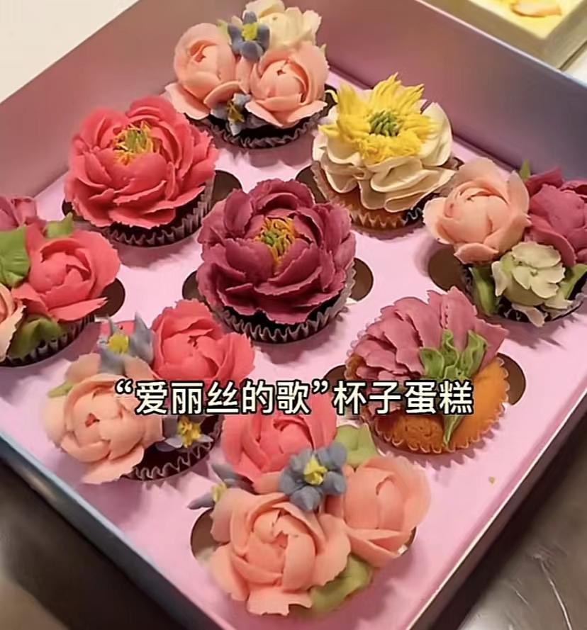 这一款蛋糕真的惊艳到我了,这个纸杯蛋糕真的太精致太好看了,蛋糕上面的花朵雕刻的栩栩如生,做出了我舍不得吃的样子,而且这是关晓彤同款的哦。