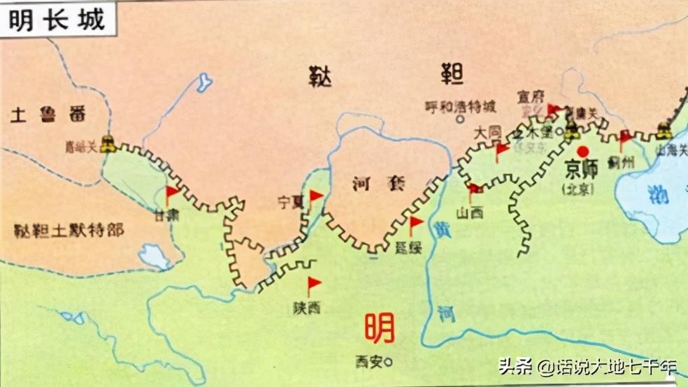 朱棣篡位后,为防范前线藩王学他篡位,遂将其全部撤回,于是,北边国界大幅度后退,其后修建的明长城,退到陕北北界。