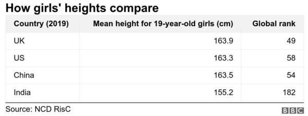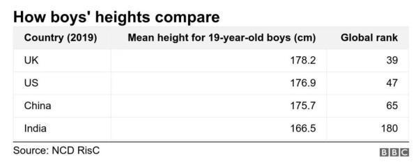 2020年,医学杂志《柳叶刀》(Lancet)的研究显示,近30年来,中国人的身高越来越高,19岁中国男性的平均身高为175.7厘米,中国女性的平均身高为163.5厘米,位列东亚第一。