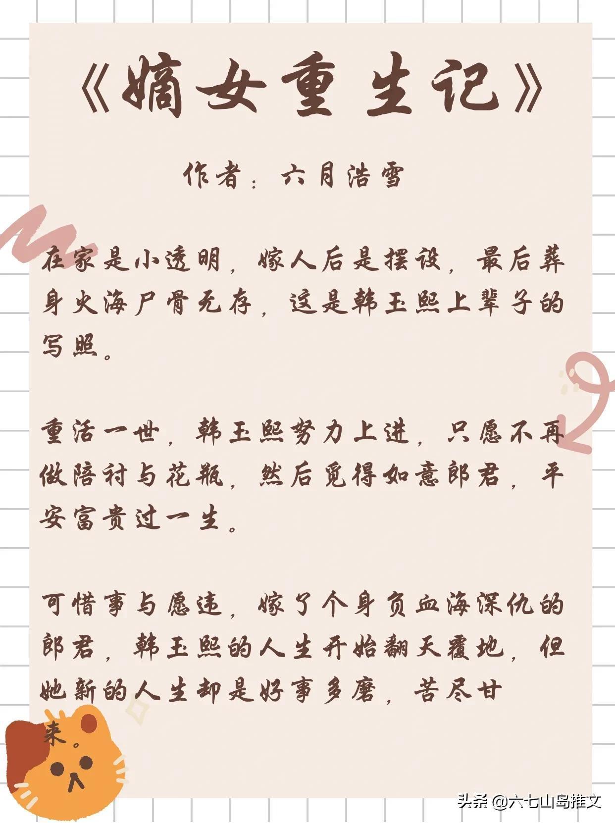 女主前世很不如意,因为胆小懦弱,娘家不爱父亲厌弃,最后还死得很惨。