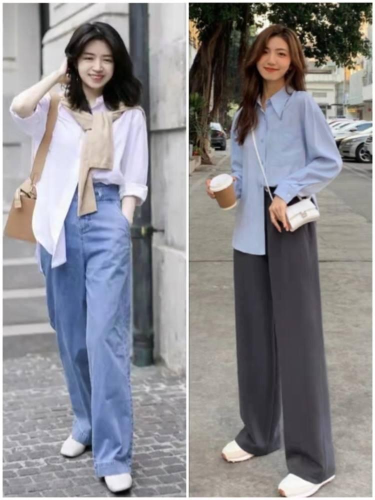 衬衫+直筒裤