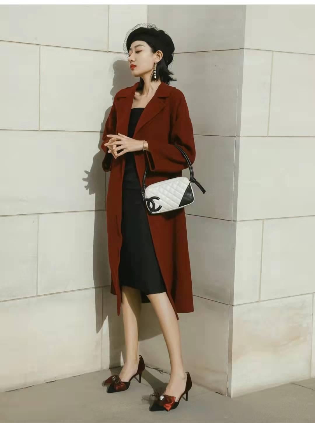 红色大衣搭配:新年不仅要穿出喜庆的气氛,还要有优雅温柔的复古感才ok!酒红色大衣版型超正,不得不说酒红色会比正红色要洋气很多,而且会更有复古优雅的感觉,内搭黑色连衣裙和酒红色高跟鞋,头戴黑色网纱贝雷帽,一套温温柔柔很有气质!