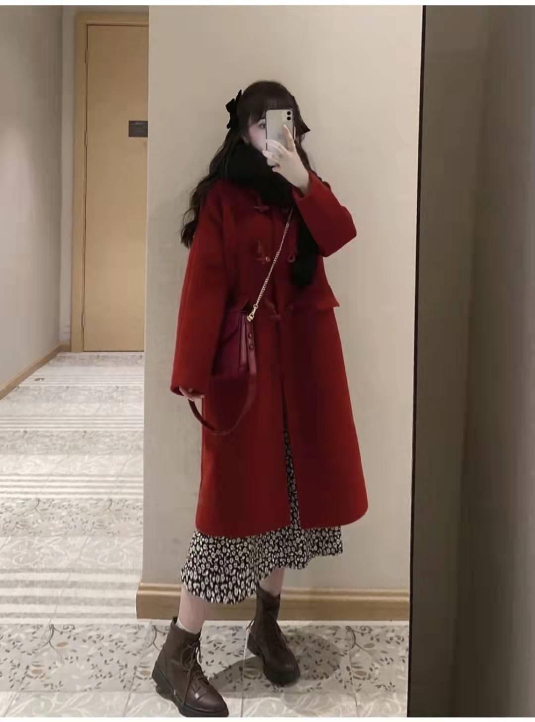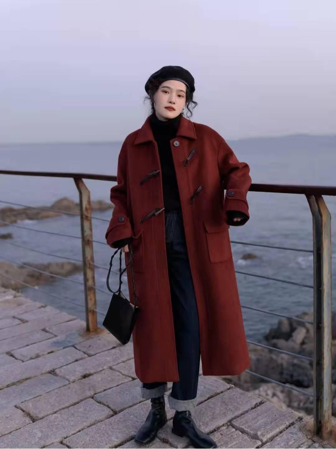 红色大衣搭配:农历新年倒计时不到一个月,分享一款果酱红的牛角扣大衣。