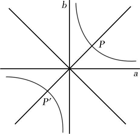 一条由直线a+b=0和a-b=0构成,另一条由等轴双曲线ab=+2构成。