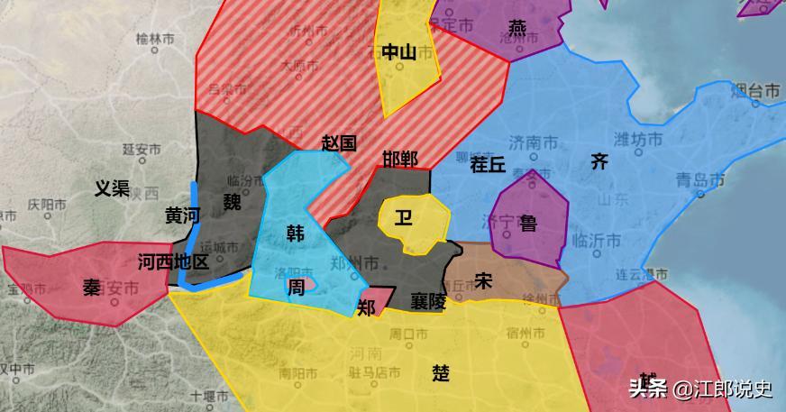 但是东部地区不一样,魏国迁都到大梁,其目的就是扩张魏国在中原的影响力。从地缘政治上看,魏国的崛起必定会侵犯宋、齐、赵三国的利益(ps:卫国已经臣服魏国了)。