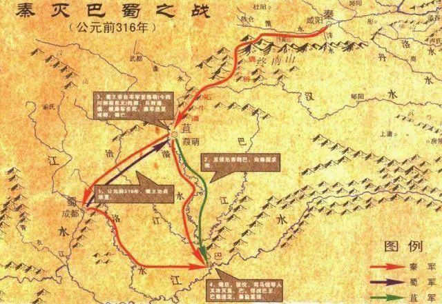 而且巴蜀可从水道通楚,得蜀则得楚,楚亡则天下并矣。《战国策》记载,秦惠文王采纳了司马错的建议,举兵伐蜀。后废蜀候,实行郡县制。