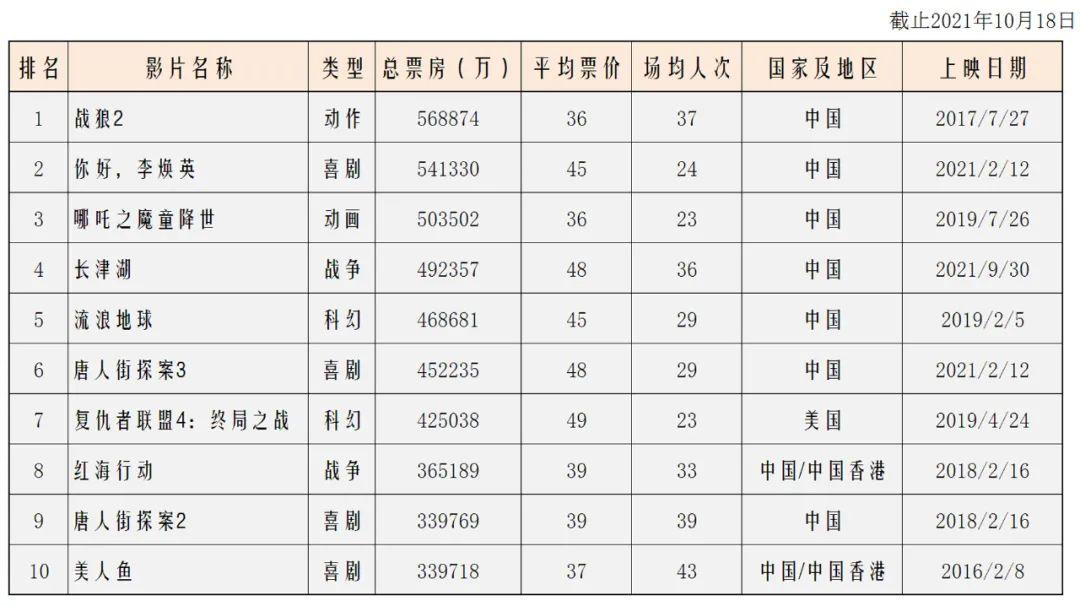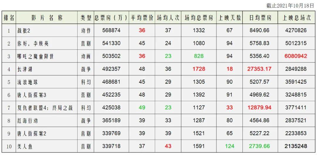 从场均总票房这个重要指数来看,目前《长津湖》的票房含金量最高。