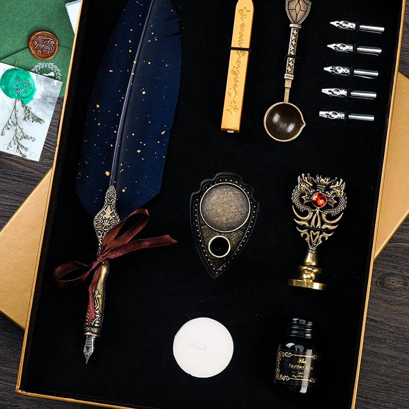 新款欧式复古羽毛笔,不锈钢材质,特殊合金笔头,不用墨水的钢笔,配送榉木笔座,是书写利器,更是书桌上一件艺术品,送礼非常高级,很别致的一款礼盒。