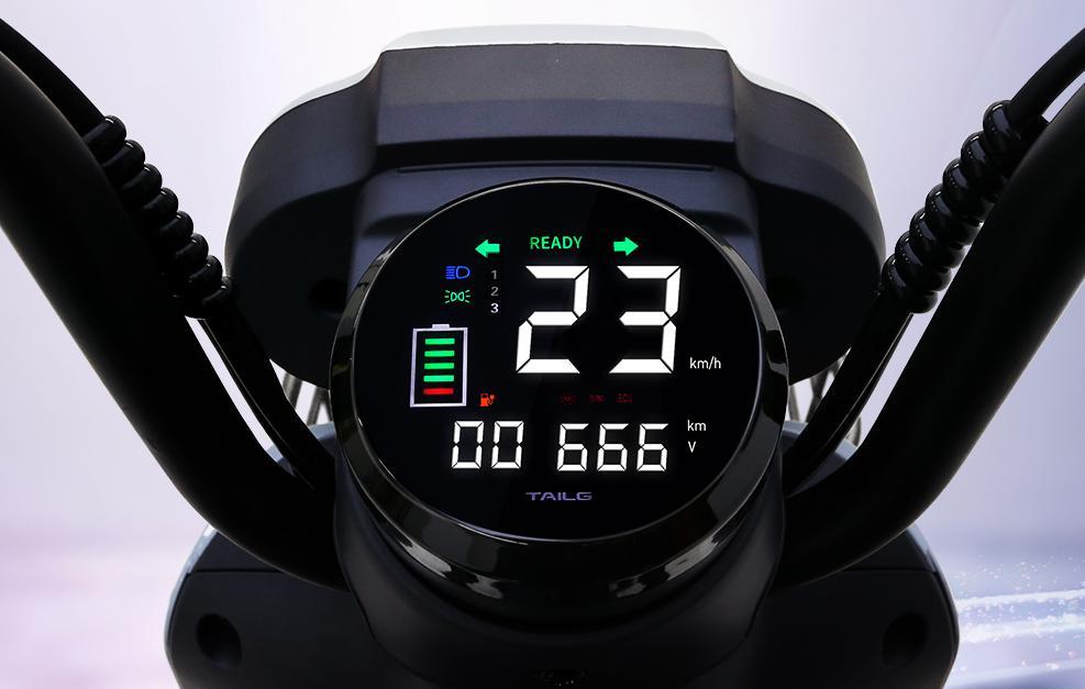 除了动力和续航之外,这款车的其他配置也比第一款突出,车辆搭载的是7.2英寸的大屏显示器,让关键数据显示得更清晰;车辆是前碟后鼓的制动设计,可以有效缩短快速行驶的制动距离。