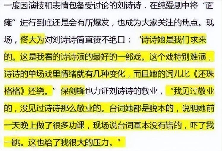 保剑锋和佟大为也多次夸赞刘诗诗敬业: