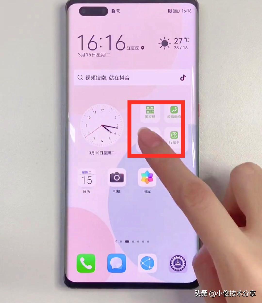 在我们的手机桌面上,我们可以添加一些卡片,在卡片中就能设置【健康码】和【行程码】