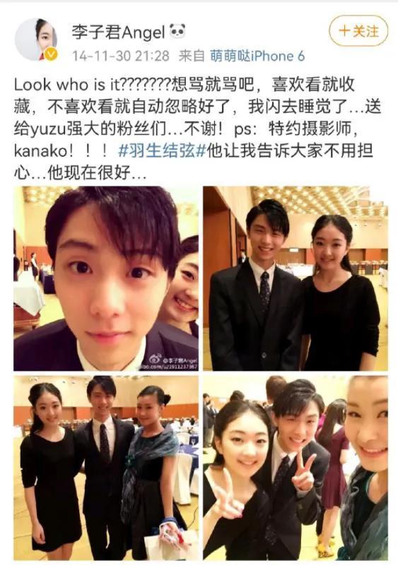 2014年,李子君在个人社交媒体上分享了自己和羽生结弦的亲密合照,当时很多人都以为两人是在谈恋爱,所以纷纷评论:不配。